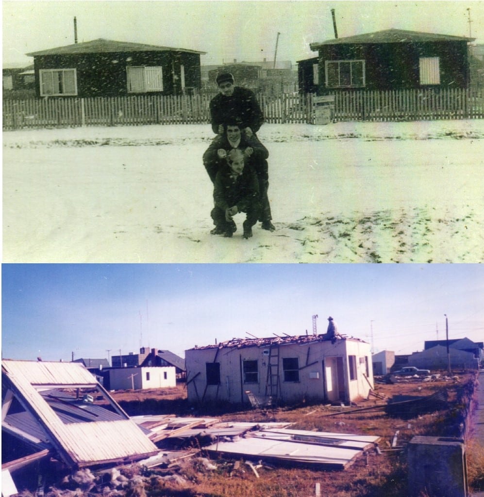Lo que fuera el barrio Piedra Buena, en sus días mejores: por la calle Ameghino, y en el momento que fue desarmado para dar lugar a la ampliación del Hospital.