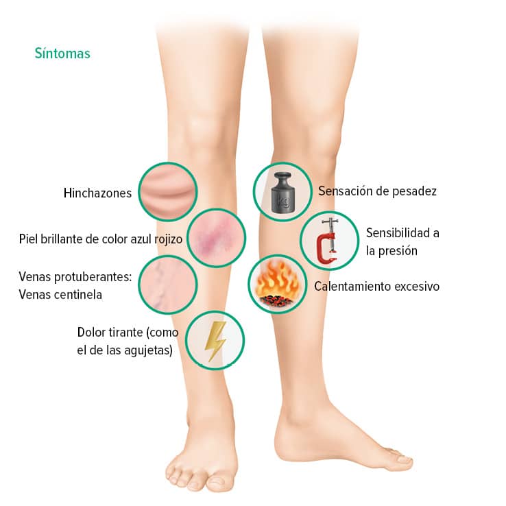 Se produce cuando un coágulo de sangre se forma en una vena profunda, generalmente en las piernas. Los síntomas más frecuentes son:
