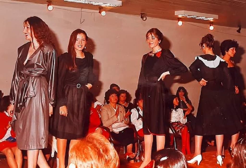 Salón de Usos Múltiples del Hotel Los Yaganes. Desfile de moda. Visibles: Marcela Vera, Jeanette Senkovic y Katy Fava.