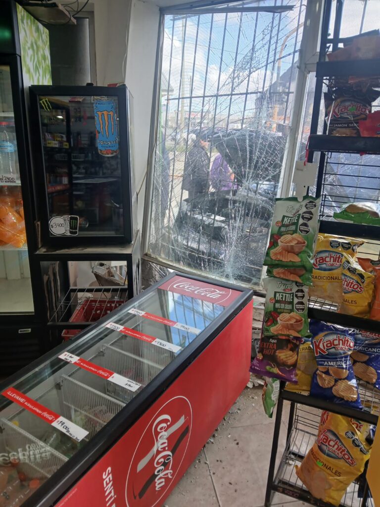 El siniestro dejó importantes daños materiales tanto en los rodados como en la estructura del local comercial, pero no hubo lesionados.