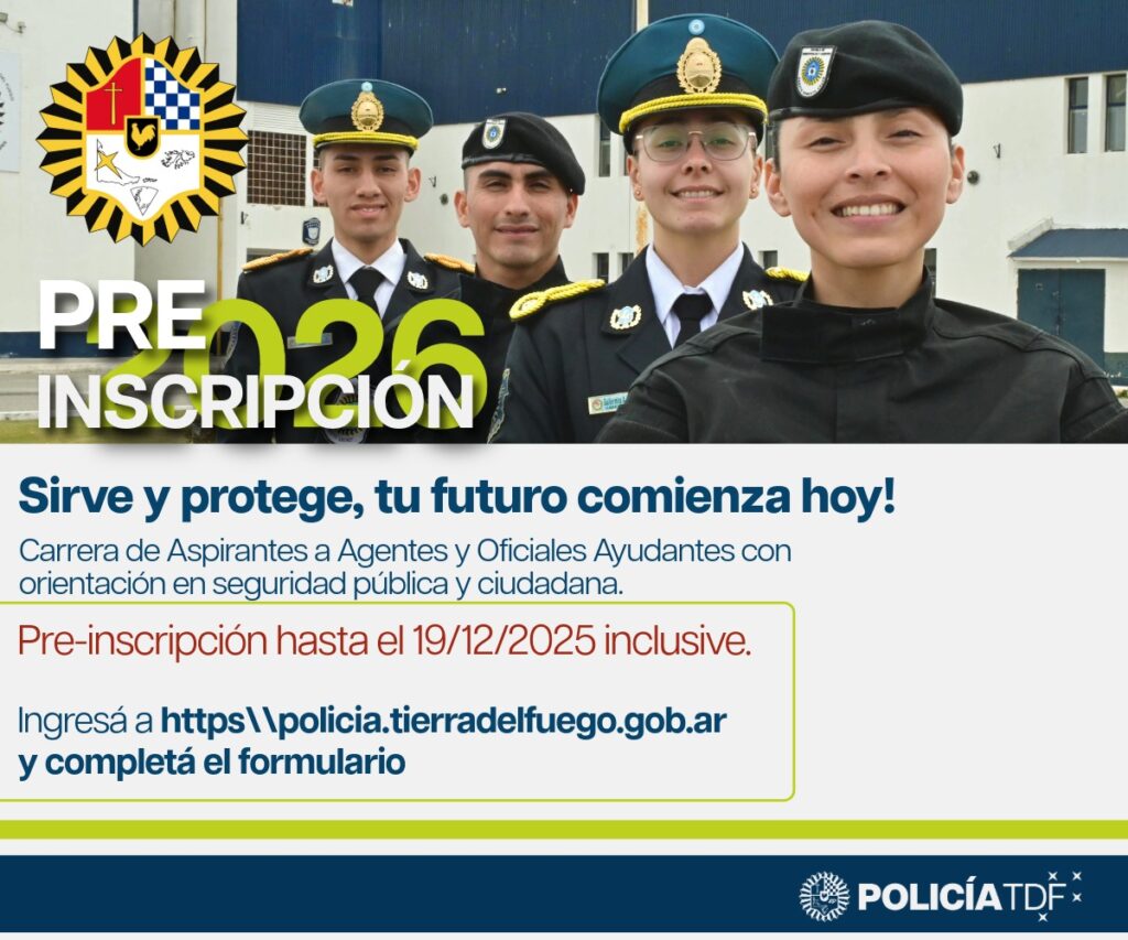 RÍO GRANDE. – Las carreras que se ofrece para el año 2026 en la Escuela Superior de la Policía provincial son de: Oficial Ayudante Técnico Superior en Seguridad Pública y Ciudadana y Agente de Policía con orientación en Seguridad Pública y Ciudadana.