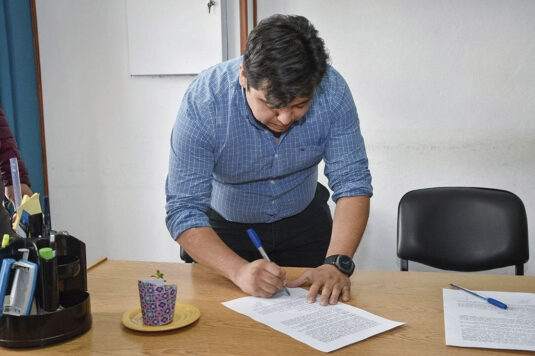 TOLHUIN.- El Intendente Daniel Harrington recibió en su despacho a los Dirigentes Gremiales de ATE Seccional Tolhuin donde se llevó a cabo la firma del acta acuerdo que contempla:
