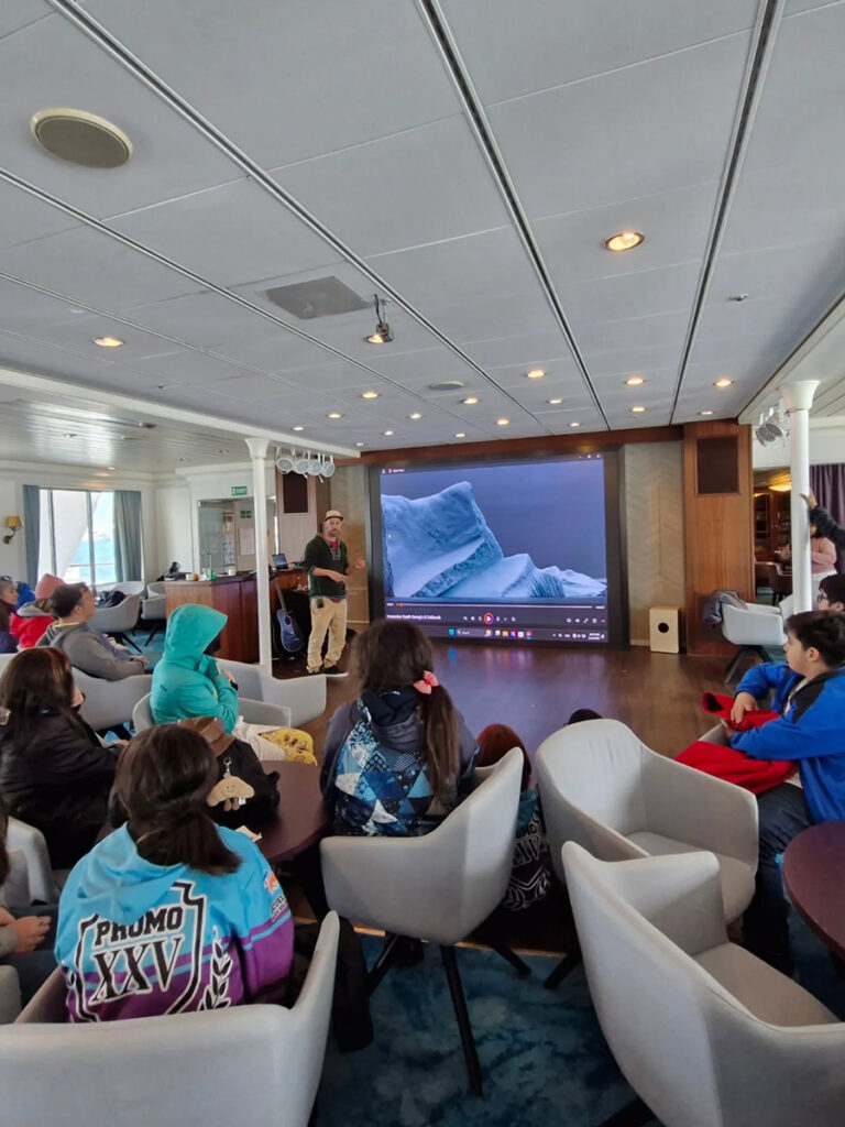 En el recorrido los alumnos conocieron la embarcación con información relevante en torno a la organización interna y las actividades que realizan a bordo rumbo a la Antártida.
