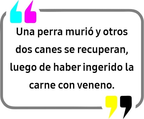 Los alimentos fueron ingeridos por tres perros, dos hembras y un macho que fueron llevados a una Veterinaria para que puedan ser asistidos. Lamentablemente, una perra falleció y los otros dos se encuentran en recuperación.