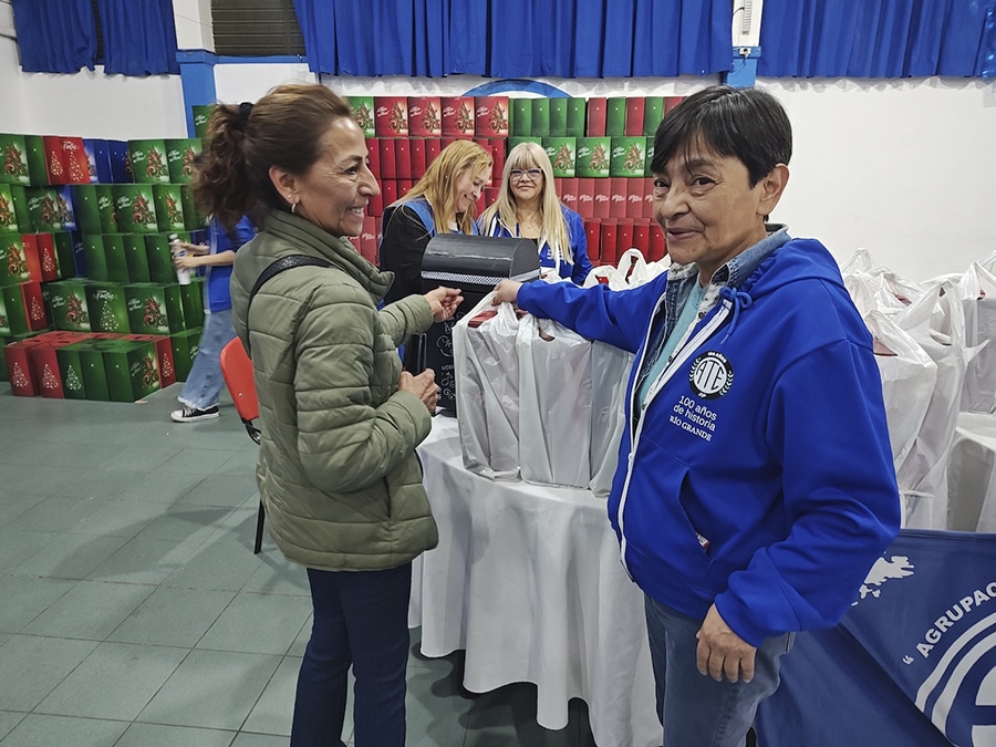 RIO GRANDE.- Violeta Santander, secretaria adjunta del gremio, señaló que “este año costó mucho hacerlo, pero no podíamos dejar de estar como lo hacemos siempre. Así, con un gran esfuerzo, logramos que nuestros afiliados y afiliadas puedan tener sus obsequios y tener algo en la mesa familiar”.