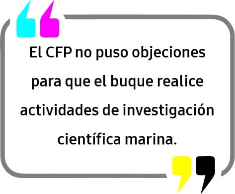 El pedido de la Embajada de EEUU fue analizado en el seno del Consejo Federal Pesquero, donde se concluyó que en los aspectos relativos a su competencia, no tiene objeciones que formular para que se autorice al buque a realizar actividades de investigación científica marina en espacios marítimos sujetos a la soberanía y jurisdicción nacionales, durante el período señalado y en el marco de la normativa vigente.
