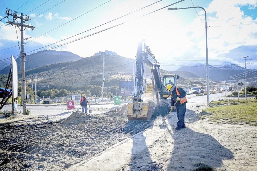 USHUAIA.- Comenzaron los trabajos de reparación vial en la rotonda de ingreso a Andorra, en un tramo de Facundo Quiroga y en un sector de la calle Eva Perón, obras que fueron recientemente adjudicadas tras el proceso de licitación.