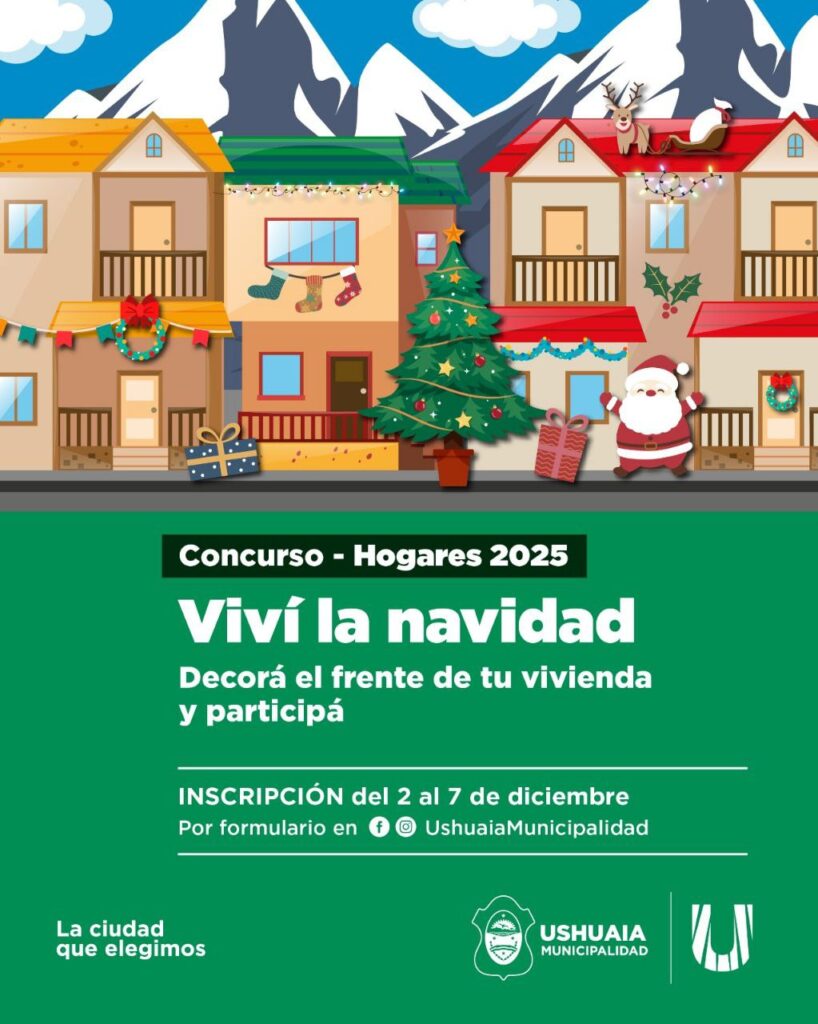 La Municipalidad de Ushuaia, a través de las secretarías de Políticas Sociales, Sanitarias y Derechos Humanos, y de Cultura y Educación, anunció la realización del concurso “Viví la Navidad 2025”, propuesta que invita a vecinos y comercios de la ciudad a ornamentar el frente de sus viviendas y de sus vidrieras para celebrar de manera colectiva el espíritu festivo.