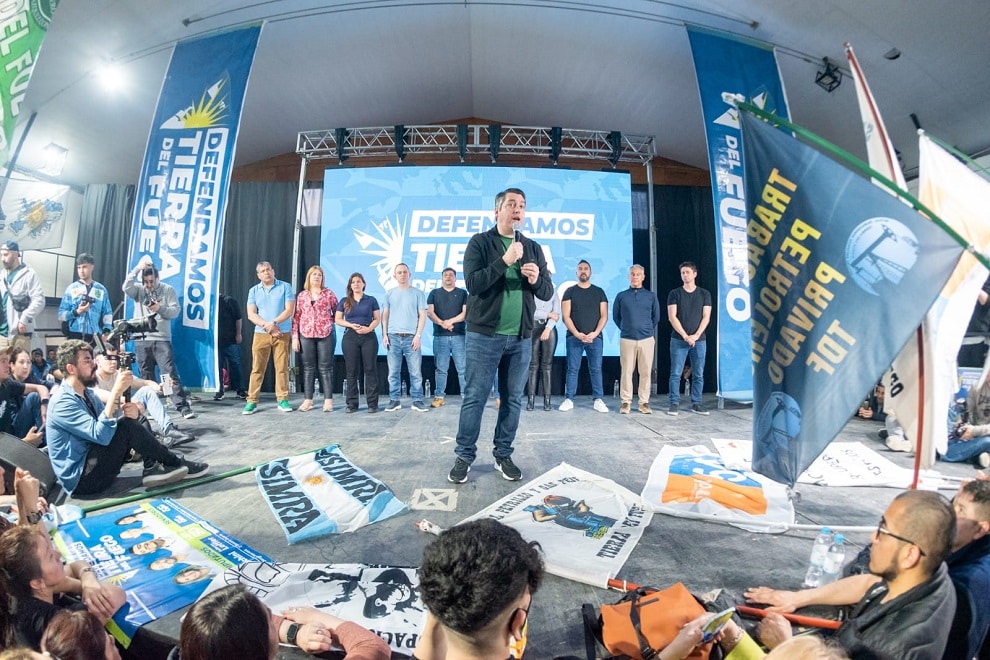 TOLHUIN.- Durante el cierre de campaña realizado en ésta ciudad, el candidato a senador nacional por el frente Defendamos Tierra del Fuego, Gastón Díaz, llamó a la comunidad fueguina a “ponerse de pie” para defender la provincia frente a las políticas del Gobierno nacional.