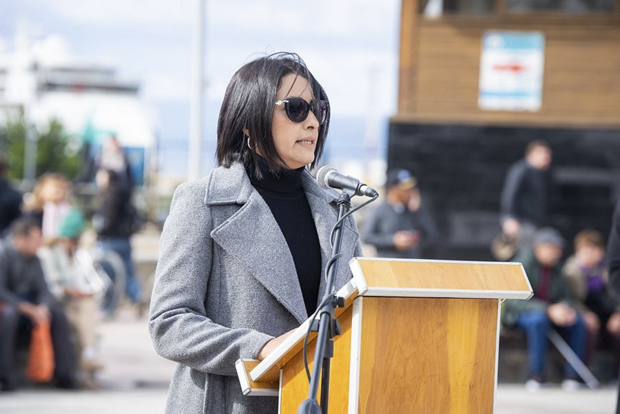 USHUAIA.- Al ser invitada a hablar ante los presentes, visiblemente emocionada por su primera participación en un acto oficial en la provincia, Marisa Delgado señaló: “Nací con esto, me crié con esto, para mí es lo natural. Pero el calor de la gente cuando se entera reafirma que es una responsabilidad también representar ese carácter de nativo antártico y de bicontinental”.