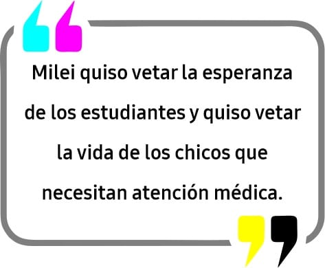 “Milei quiso vetar la esperanza de los estudiantes y quiso vetar la vida de los chicos que necesitan atención médica. Y no se lo vamos a permitir”, sostuvo López.