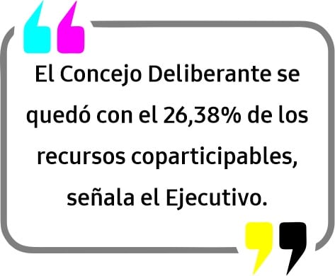 En el informe indican que, del total de recursos coparticipables, que ascienden a más de 16.659 millones de pesos, el presupuesto del Concejo Deliberante fue fijado en la suma de 4.395 millones de pesos, es decir, que se quedó con el 26,38%, casi el doble de lo que afirmaron en un comunicado oficial donde habían señalado que sólo les corresponde el 14%.