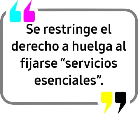 Se restringe el derecho a huelga al declararse determinadas actividades como “servicios esenciales” (con la obligación de garantizar una cobertura mínima del 75%) y “servicios trascendentales” (con la obligación de garantizar una cobertura mínima del 50%).