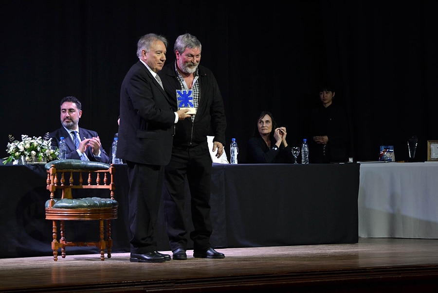 El intendente Martín Perez brindó un emotivo discurso en el que agradeció a Mario Ferreyra en nombre de todos los vecinos de Río Grande, destacando su obra, trayectoria y el «sacrificio» puesto en la educación pública y en el desarrollo de la ciudad. El jefe comunal, quien se reconoció exalumno y graduado universitario, resaltó fundamentalmente la visión que tuvo Ferreyra, no solo en lo educativo, sino también en la transformación urbana que impulsó en la gestión del exintendente «Chiquito» Martínez, mencionando la avenida Perón, el monumento a los Veteranos y la propia Casa de la Cultura, obras que se hicieron «con visión» a pesar de las críticas iniciales. Perez también subrayó la vocación de servicio de Ferreyra como un ejemplo de construcción colectiva en «tiempos de tanta individualidad».