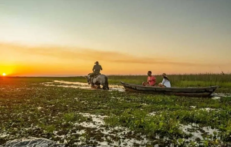 De entre todo este abanico de experiencias hay una que llama particularmente la atención: los paseos en canoas tiradas por caballos, al paso cuando el terreno es playo y nadando con el agua al cuello en las zonas de mayor profundidad. Esta actividad tiene su origen en la necesidad de los pobladores de transportar lo necesario para la vida diaria entre los esteros y humedales. Permite al turista, no solo disfrutar de un paseo rodeado de la naturaleza, sino también conocer y experimentar de primera mano las costumbres locales.