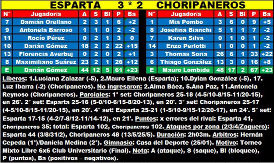 Esparta se impuso –en forma invicta- en el Torneo de Voleibol 6×6 Mixto Libre, organizado por el Club Universitario, durante el pasado fin de semana, en la Casa del Deporte.