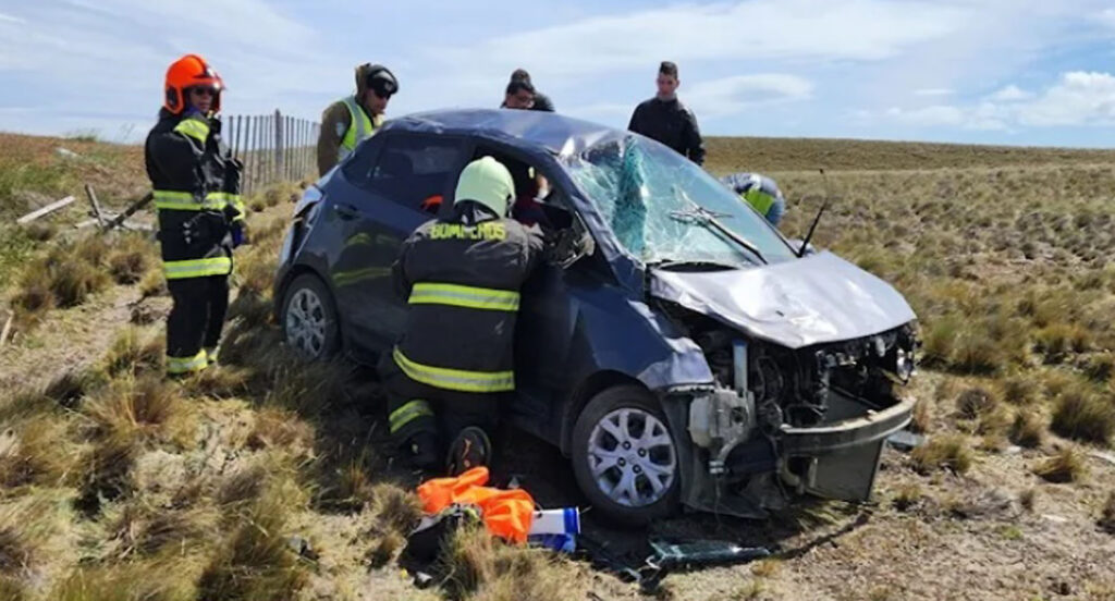 RÍO GRANDE.– Hoy antes del mediodía, un vehículo un vehículo Hyundai I10 de esta ciudad con cuatro pasajeros, volcó en un sector de la ruta chilena (CH-257), a unos 31 km antes de arribar al cruce de barcaza en Bahía Azul.