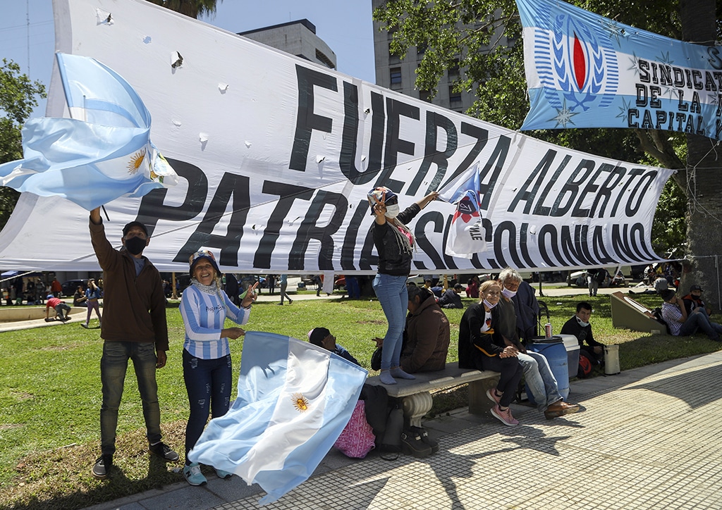 Las manos en V y las sonrisas frente a las cámaras de televisión y los fotógrafos que cubrían la concentración fueron una constante, con mensajes «para vos Macri» e insultos al anterior Gobierno de Cambiemos.