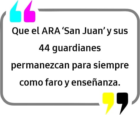 “Que sus nombres sigan resonando en el mar y en nuestro corazón. Que el ARA ‘San Juan’ y sus 44 guardianes permanezcan para siempre como faro y enseñanza. Porque su ejemplo nos inspira a ser mejores, a servir con honor y mantener viva la llama que ellos encendieron. Hoy y siempre, siga su estela iluminando nuestra derrota”, de esta forma finalizó sus palabras el Comandante de la Fuerza de Submarinos.