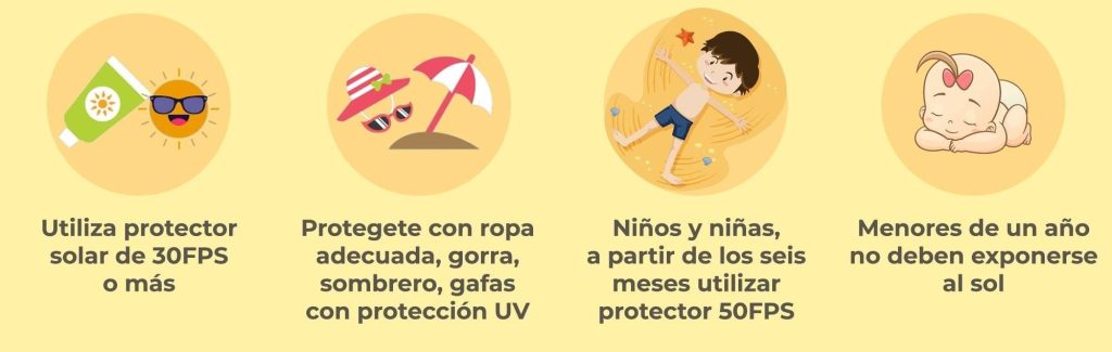 *Utilizar ropa que cubra el cuerpo, lentes con protección UV y sombreros.