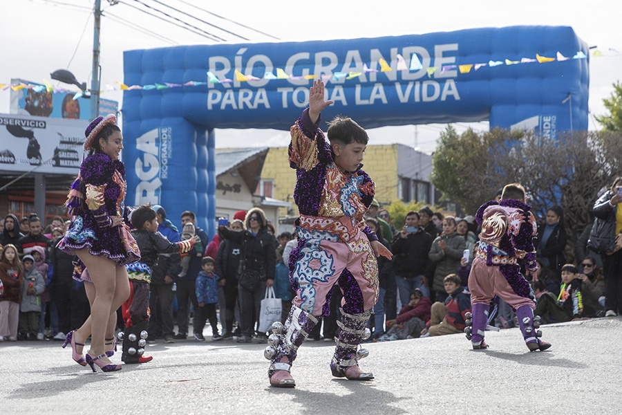 El escenario elegido fue la avenida Perito Moreno, donde artistas locales, de Ushuaia y de Punta Arenas desplegaron su talento ante un público que acompañó con alegría cada presentación.