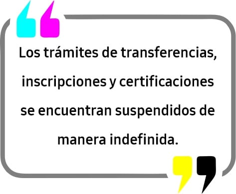Sin intervención designada ni atención al público, los trámites de transferencias, inscripciones y certificaciones se encuentran suspendidos de manera indefinida.