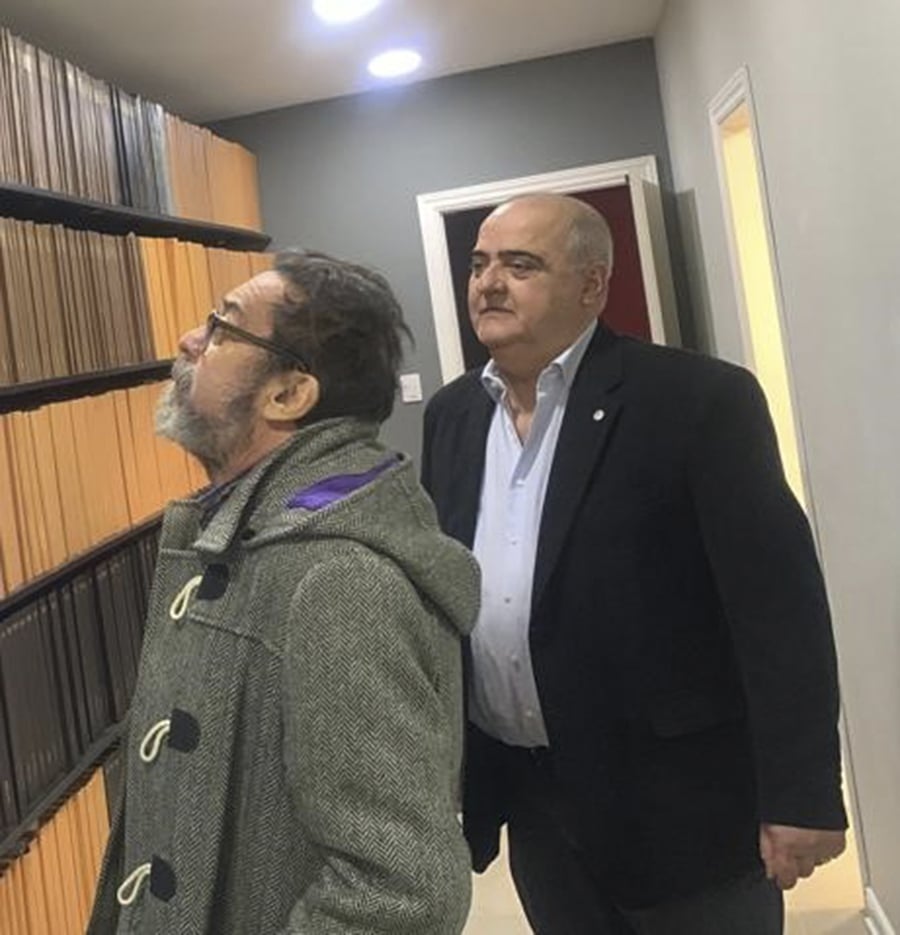 Mingo dio un impulso fundamental a la preservación de la historia fueguina; momento de la inauguración de la Sala Multimedia de El Sureño, junto al director del medio Oscar González.