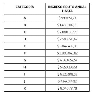 Los nuevos topes de facturación por categoría a tener en cuenta por los contribuyentes para cuando se habilite la recategorización son los siguientes: