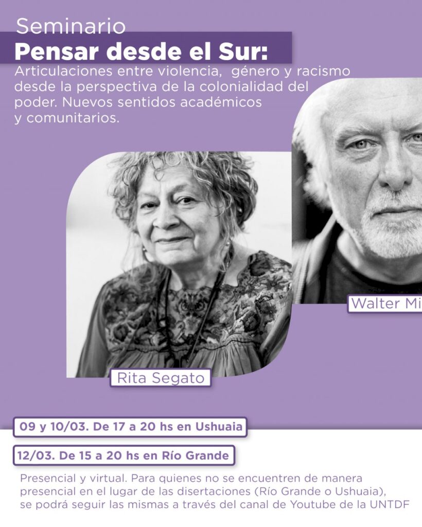 La Universidad Nacional de Tierra del Fuego, Antártida e Islas del Atlántico Sur (UNTDF), junto con la Escuela Pensar desde el Sur de la UNTREF, presentan un seminario que invita a reflexionar sobre las articulaciones entre violencia, género y racismo desde la perspectiva de la colonialidad del poder.