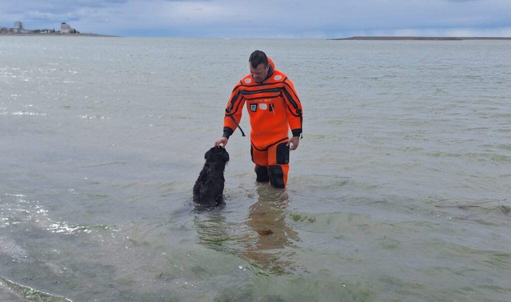 RÍO GRANDE.– Personal de la Prefectura Naval Argentina con asiento en esta ciudad rescató este viernes a un perro que había quedado atrapado por la marea creciente en el canal del río Grande.