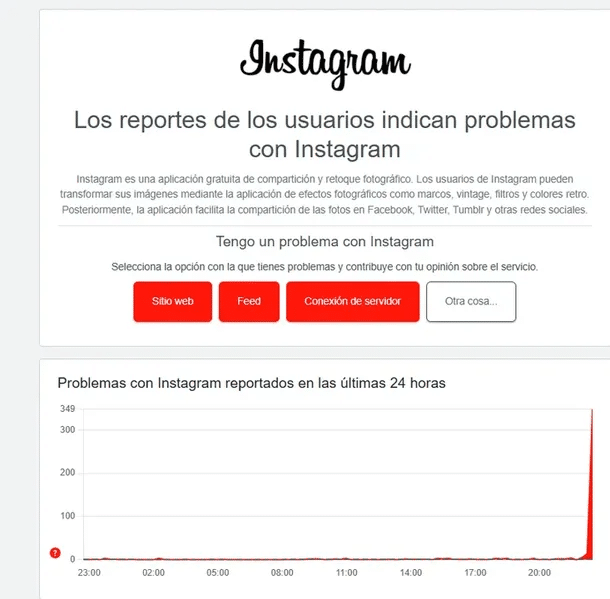 Las plataformas especializadas en el estado de servicios digitales, como Downdetector, registraron un incremento repentino y vertical en los reportes de fallas en la red social de Meta, una de las más populares de la actualidad.