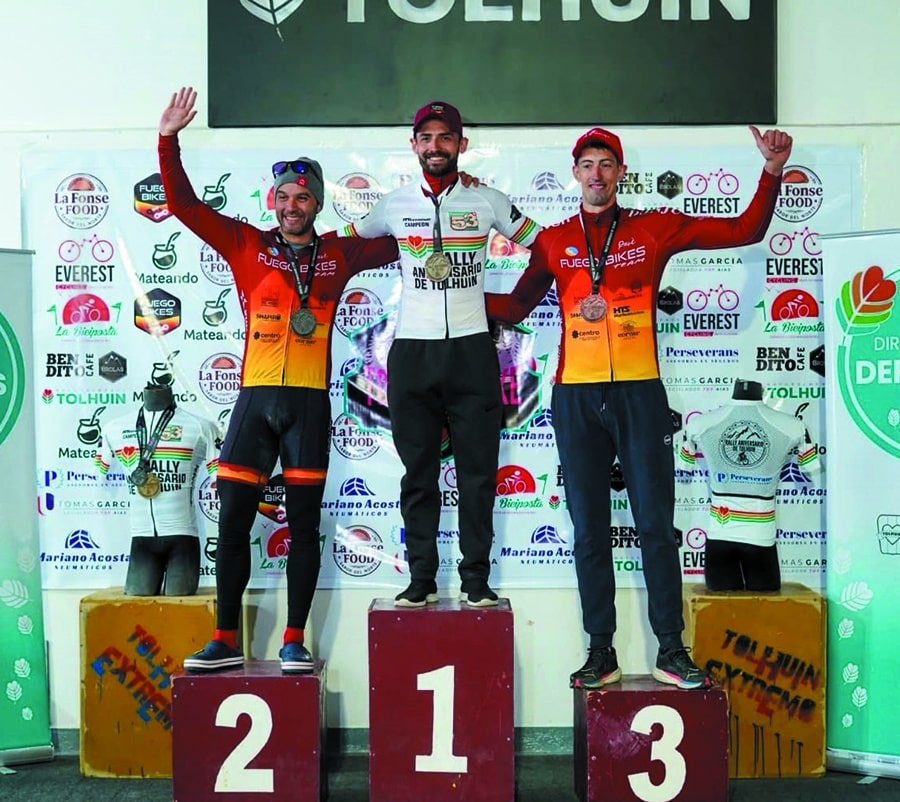 Pero antes de ingresar al sendero de Laguna Negra los tres ya estaban juntos nuevamente y al salir a la cabecera del Lago Fagnano, quien había hecho una luz fue Fran Zamora, seguido por Rodrigo Alonso y tercero relegado quedó César Ferreira; así se mantuvieron a lo largo de toda la playa y al salir al camino que los deposita en Tolhuin la ventaja era considerable, sin embargo cuando llegaron a la subida larga antes de ingresar a la zona urbanizada, tanto Alonso como Ferreira neutralizaron al puntero y a doscientos cincuenta metros de la llegada quien apretó en la última pendiente dentro de Tolhuin fue Ferreira, quien sacó una luz que le permitió llegar primero al arco de finalización con una diferencia de 5 segundos sobre Zamora y de 12 sobre Alonso; mientras que el cuarto fue Lucas Torres, también miembro del Team Fuego Bikes como los tres anteriores, pero a siete minutos de Los Tres Mosqueteros.
