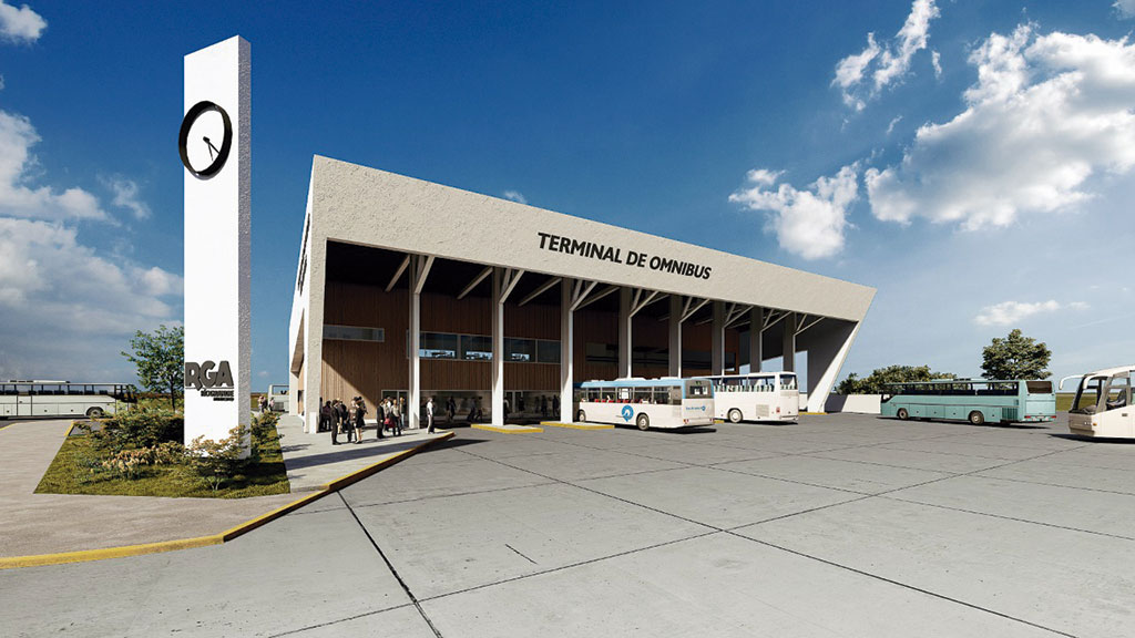 El edificio de dos plantas será de aproximadamente 900 metros cuadrados cubiertos y contará con 7 dársenas para el estacionamiento de colectivos y combis, y áreas de servicios. Contempla también una playa de maniobras y dársenas de ascenso/descenso de pasajeros protegidas del viento predominante de Río Grande, y un estacionamiento vehicular público que dará respuesta a las necesidades de la estación de ómnibus y al espacio recreativo adyacente al mismo. La misma estará ubicada en el acceso sur de Río Grande.