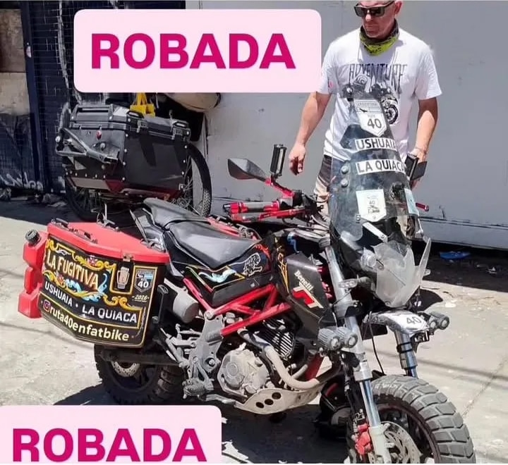El motoviajero fue asaltado el pasado viernes por dos motochorros al llegar a su casa en Buenos Aires. Le sustrajeron la moto “La Fugitiva”, con la que planeaba unir Ushuaia y La Quiaca por la Ruta 40.