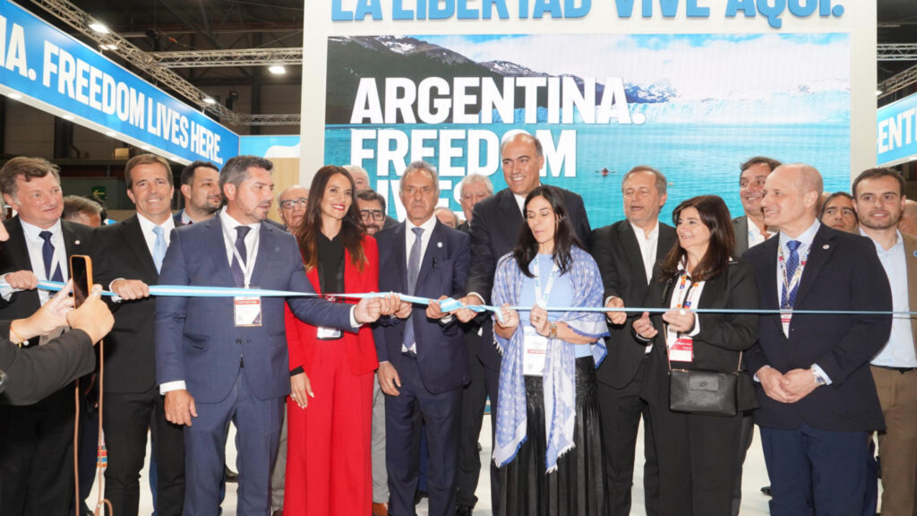 MADRID, ESPAÑA.- El secretario de Turismo y Ambiente de la Nación, Daniel Scioli, encabezó hoy la inauguración del stand de la Argentina en la edición 2026 de la Fitur, que abrió hoy sus puertas en Madrid, con la participación de más de 150 países y 10.000 empresas. De la ceremonia participaron los gobernadores de San Juan, Marcelo Orrego, y de Misiones, Hugo Passalacqua, y la presidente de la Cámara Argentina de Turismo, Laura Teruel.