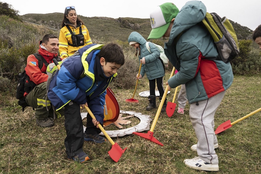 Durante la jornada, los estudiantes recorrieron distintas estaciones educativas donde aprendieron sobre la prevención de incendios forestales a partir de la simulación del uso del fuego en un camping habilitado; el uso responsable de calentadores y anafes a gas; el cálculo del índice de peligrosidad y las herramientas que utilizan los combatientes en el terreno.
