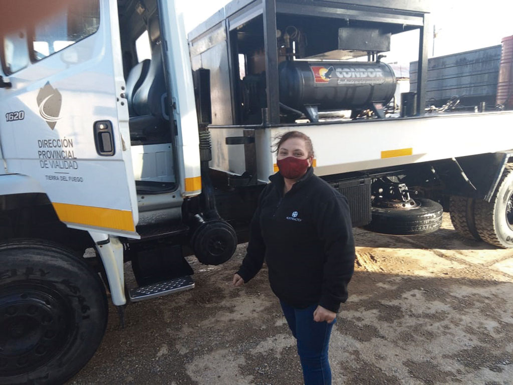 RIO GRANDE.- Susana Humofe, una vecina de esta ciudad quien buscaba trabajo como camionera profesional, finalmente logró su objetivo y ahora es personal de Vialidad Provincial.