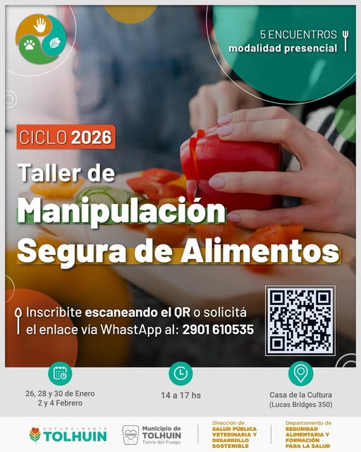 TOLHUIN.- Por ello, informamos que se encuentran abiertas las inscripciones para el ciclo 2026 de los Talleres de Manipulación Segura de Alimentos.