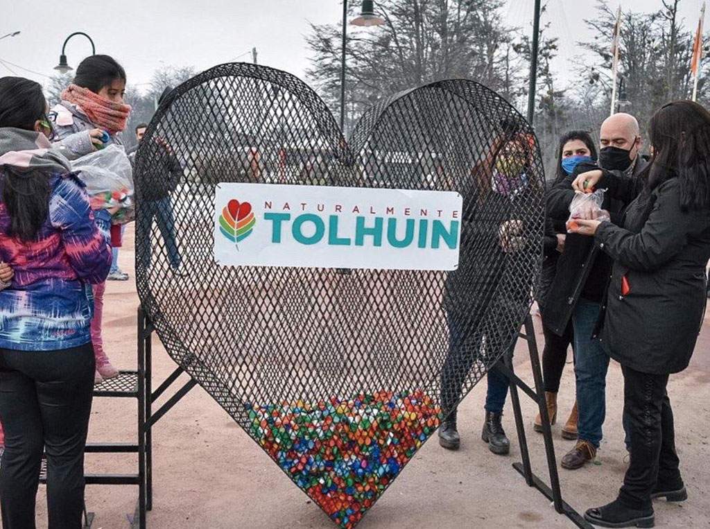 TOLHUIN.- El viernes por la tarde quedó inaugurado el corazón para tapitas de plástico en la plaza cívica “Corazón de la Isla” de Tolhuin, colaborando con el Programa de Reciclado y Medio Ambiente de Fundación Garrahan y acompañando la iniciativa voluntaria planteada por Carlitos y la familia Reble.