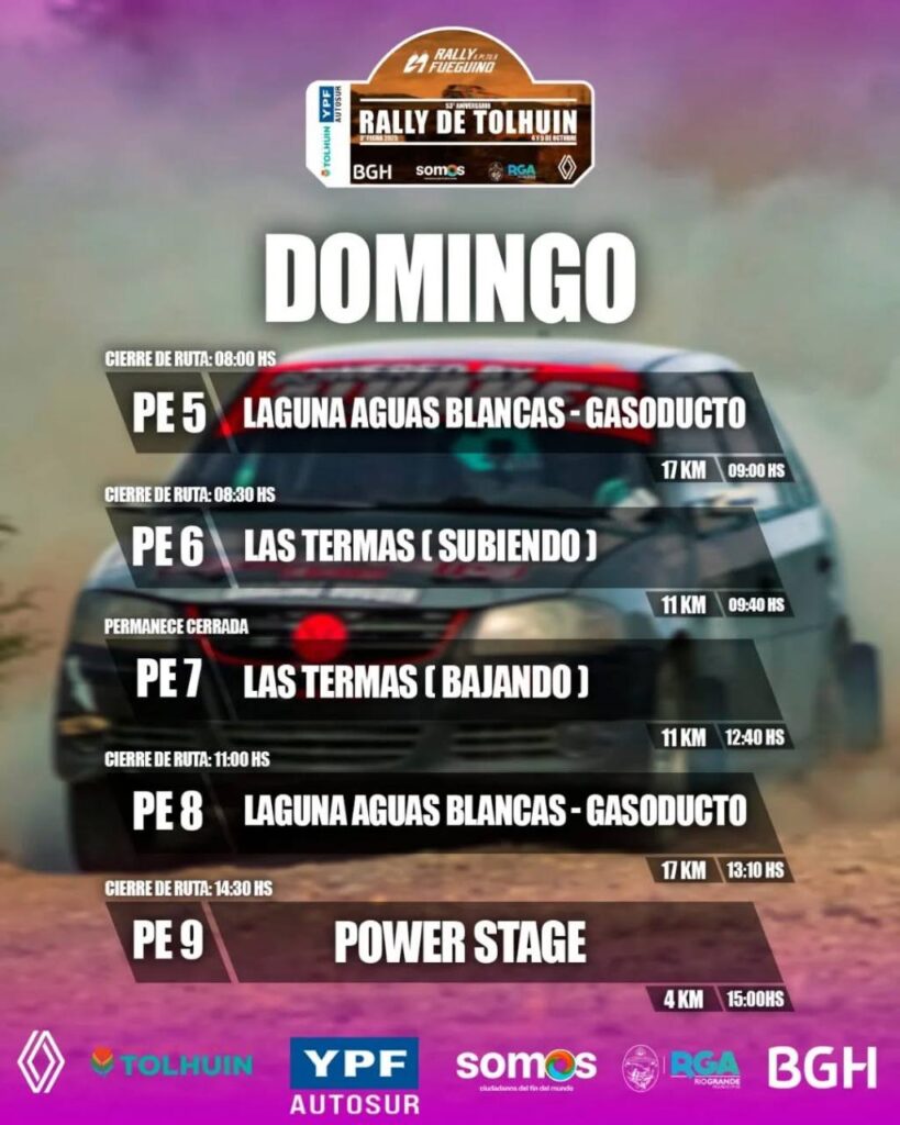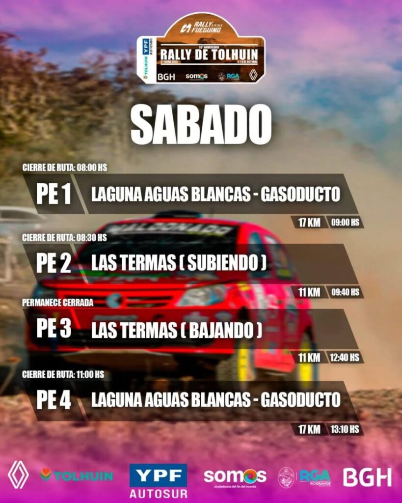 En lo que es la disputa de la 3° fecha del Campeonato Fueguino de Rally con el Rally de Tolhuin de APITUR, se trata de una competencia tradicional que promete adrenalina en cada tramo de las rutas y caminos de la zona. Este año el circuito incluirá las rutas provinciales 27 (aguas blancas) y 25 (Las Termas) ida y vuelta, y los cierres de ruta estarán previstos desde las 8:00 de la mañana. Serán dos días intensos en los que la pasión por los fierros también dirá presente en la celebración.