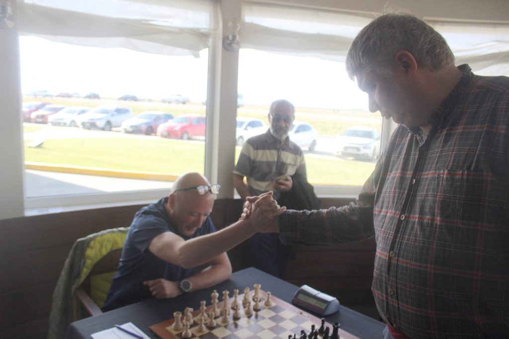 Alderete finalmente consiguió entablar (“llevé las piezas negras y jugué una Defensa Holandesa, me sentí muy bien, como que yo estaba para empatar o ganar, y él -con quien ya había perdido en simultáneas en 2021- para empatar o perder, en algún momento me debo haber equivocado), e Iragüen fue el último en abdicar.