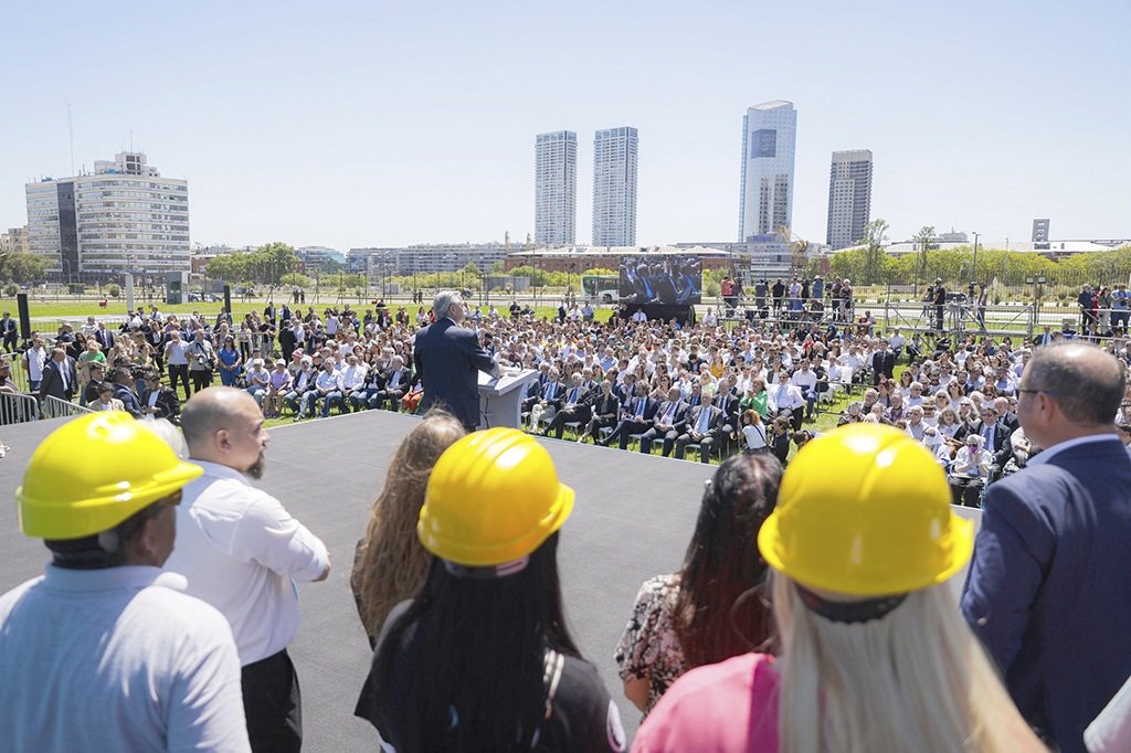 El presidente Alberto Fernández encabezó ayer a la mañana en el Parque Colón de la Casa Rosada el acto oficial por los tres años de gestión de gobierno que se cumplieron el último 10 de diciembre.