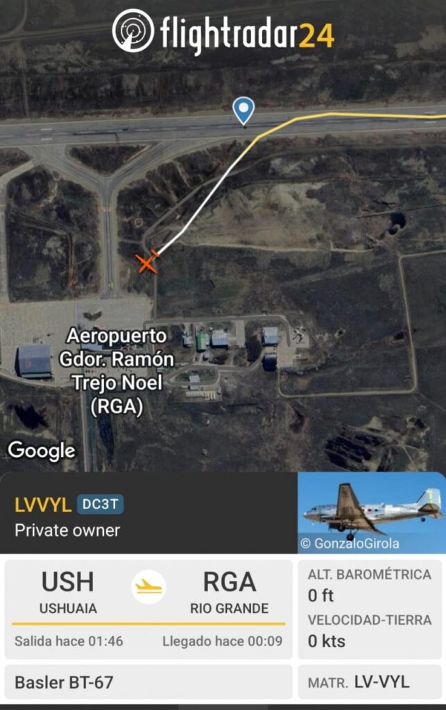 RÍO GRANDE. – Antes del mediodía de este lunes, un avión Basler BT-67 perteneciente a la empresa Mirgor se despistó en el aeropuerto local mientras realizaba maniobras de despegue en el marco de un vuelo de entrenamiento para pilotos.