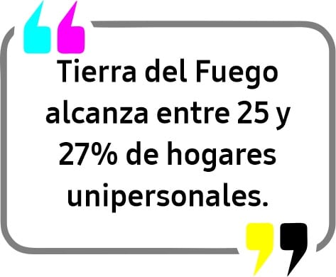 – El grupo de los jóvenes entre 20 y 34 años, en CABA que viven solos alcanzan al 20%, y entre 10 y 13% en La Pampa, Córdoba, Tierra del Fuego, Santa Fe, Chubut, Neuquén, Río Negro y Santa Cruz.